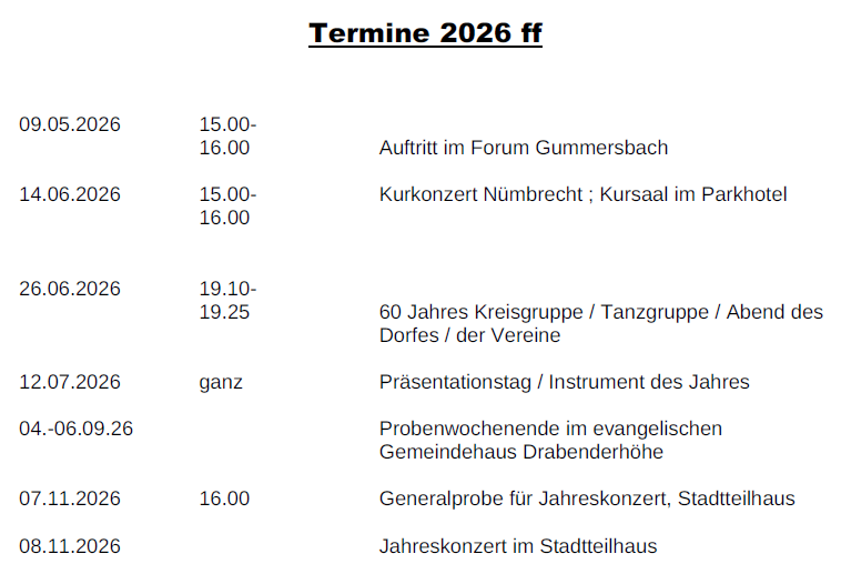 Nichts belohnt mehr für unsere Arbeit als der Applaus des Publikums. Auf einigen Konzerten und Veranstaltungen sind wir bereits aufgetreten und konnten das Publikum mit unserer fröhlichen Art mitreißen. Ob auf Jubiläen, Weihnachtsmärkten oder offiziellen Veranstaltungen - wir finden immer die richtige Musik zu jedem Anlass.